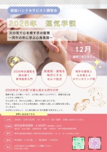 経絡ハンドセラピスト講習会 2026年運気学説/ZOOM 12月1日(月)10:00-11:00